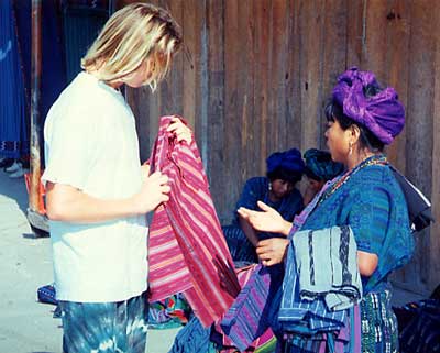 Il faut négocier ferme quand on est jeune et blond... Mais la commerçante ne sait pas que Gibé a appris le marchandage au Maroc...