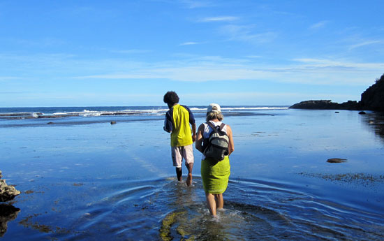 Sur la route du retour nous devons marcher plus souvent dans l'eau car la mer est montée. James nous accompagne toujours alors qu'il aurait pu resté dans le village surtout que marcher dans l'eau avec son pied blessé le faisait souffrir.
