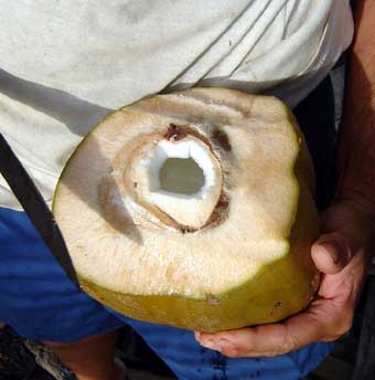 - Coco germée. Il n'y a plus d'eau dans la noix.